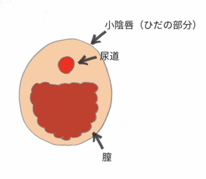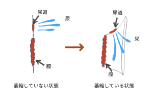 すると、おしっこが膣の中に入ってまっすぐ飛ばない、キレが悪い、出血がどこからかわからない、という症状が出てくるのです。