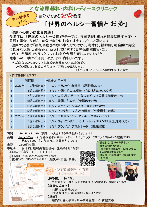 今年度は「世界のヘルシー習慣」をテーマした教室を開催をします。世界の健康に関するおもしろい文化や風習を紹介し、