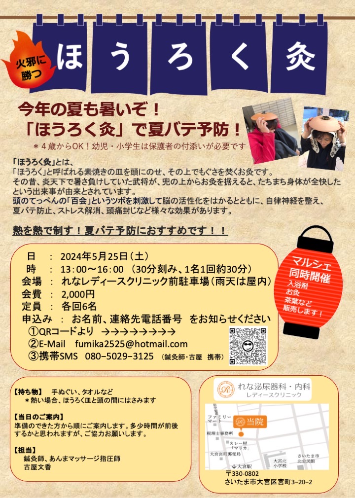 お灸イベント開催ご案内『ほうろく灸』5月25日(土)