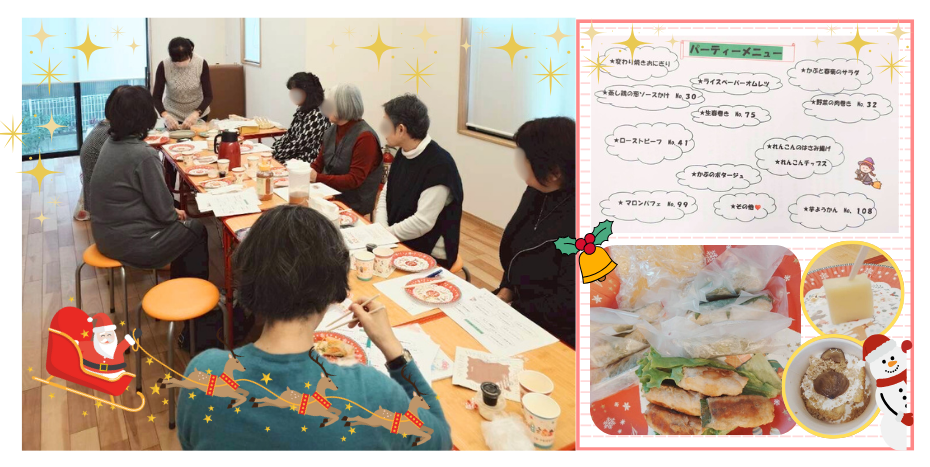 にワイワイ楽しめるパーティーメニューにして今回、ご紹介させていただきました。食事をすることに、つい臆病になってしまわれる方も多いと思いますが、ご家族、ご友人と一緒に楽しんでいただけるメニューもたくさんあります。どうか、「食」を楽しんでいただきたいと思っております。今回で私が担当させていただく最後となります。始まった当初は、何とか皆さんに少しでも美味しく召し上がっていただけるものを、、、との気持ちでいましたが、会を重ねる度に、私が皆さんから刺激をいただくことが多くなり、どんどんのめり込んでしまいました。おかげさまでレシピ集もできました。ここまで来られたのも皆さんのおかげです。そして楽しい時間を、ありがとうございました。