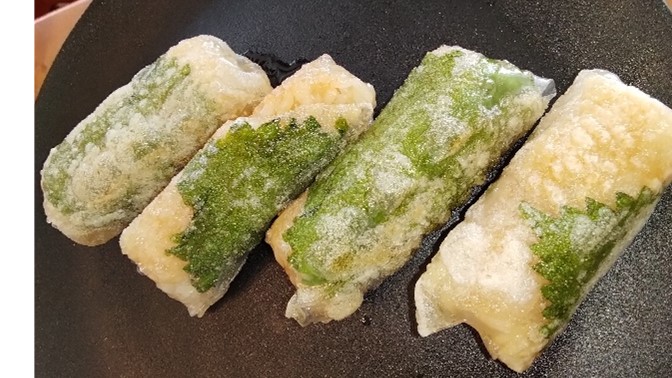 4.春巻きを包む要領でご飯を包む